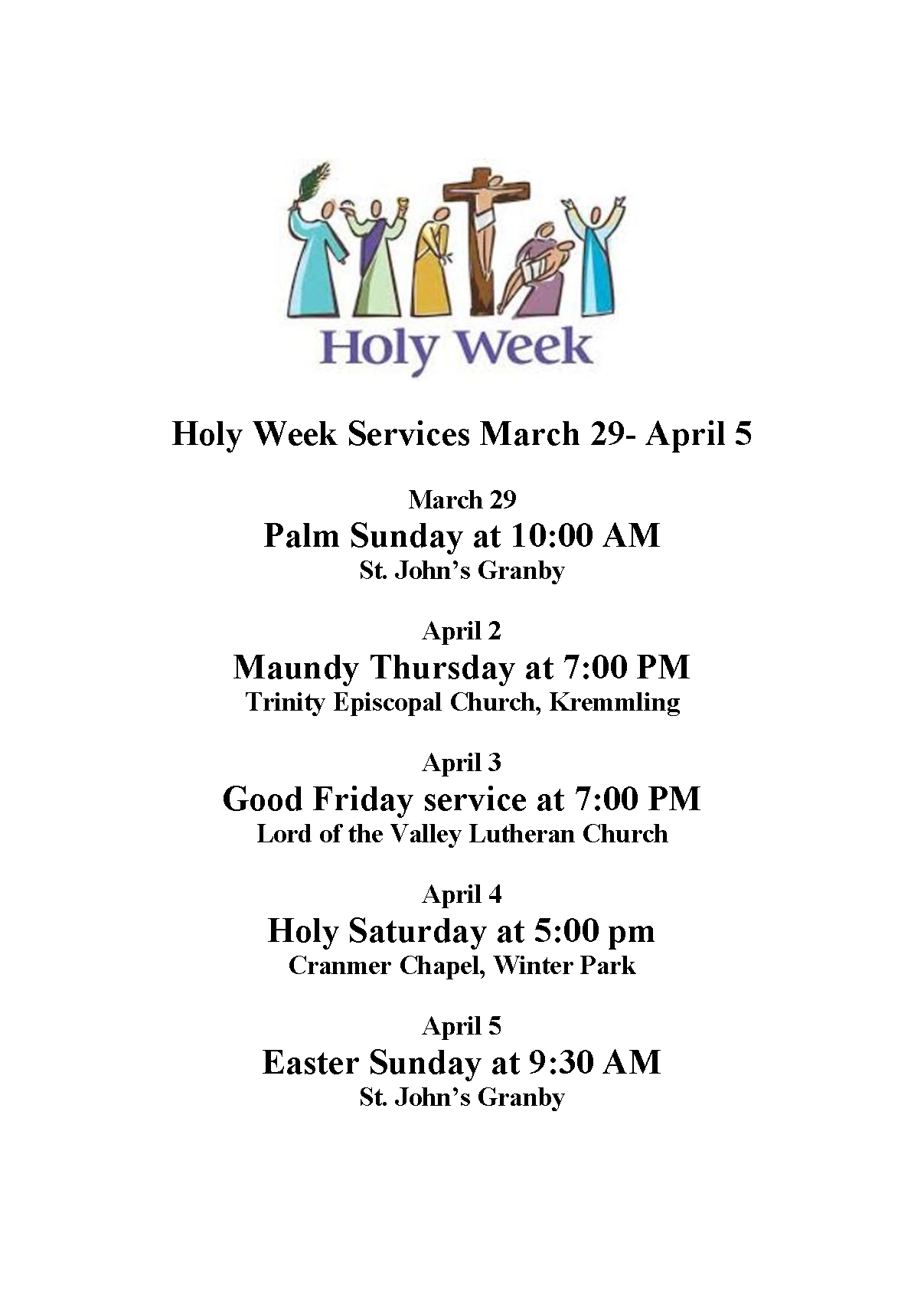 St. John in Granby: Sundays at 9:30 am (in-person and Zoom).
